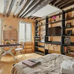 Het appartement biedt zelfvoorzienende faciliteiten, zoals een complete keuken met een waterkoker, een koelkast en een oven. Breizh Cafe Le Marais, waar Franse maaltijden worden geserveerd, ligt op minder dan 150 meter afstand van de accommodatie. Het 1-badkamer appartement is gesitueerd op geringe afstand van Chatelet - Les Halles treinstation.